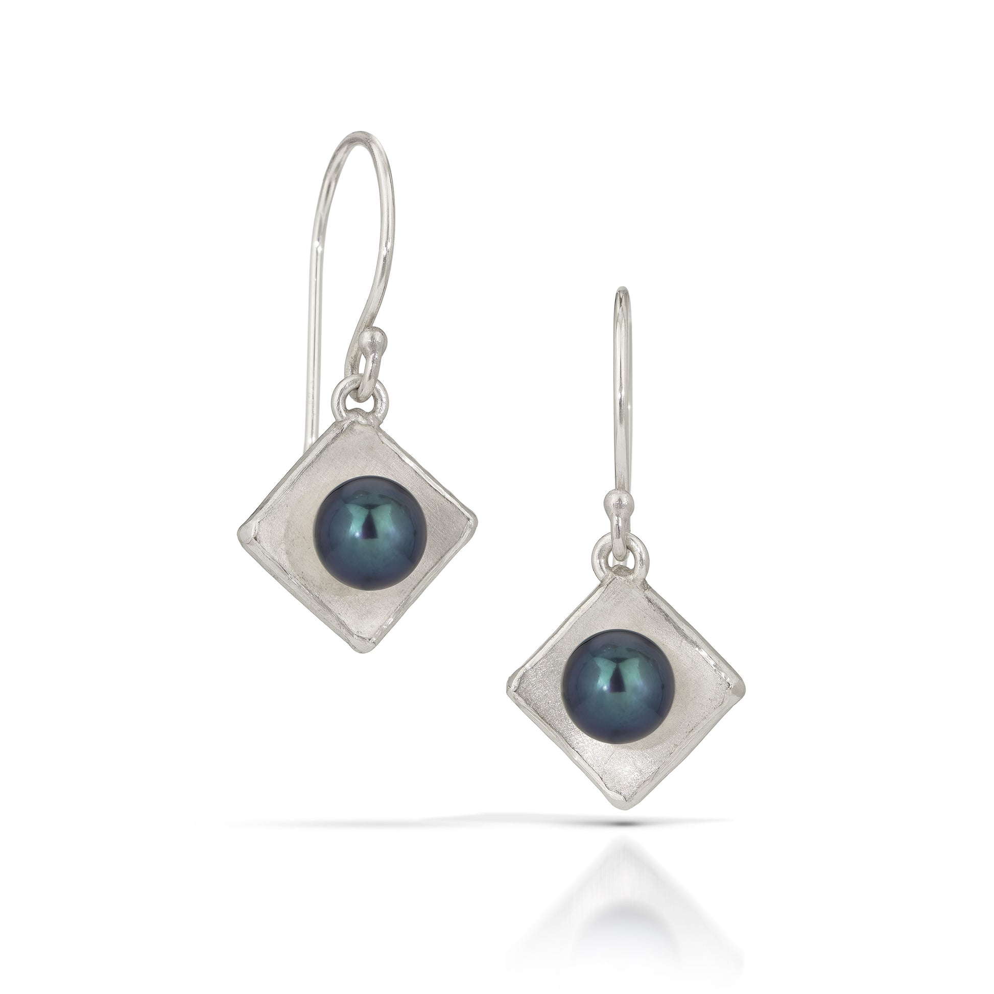 Chic and modern, these concave square drop earrings are expertly crafted from sterling silver, featuring a lustrous pearl at the center for a touch of timeless elegance. Available in White, Black, and Natural pearl colors.