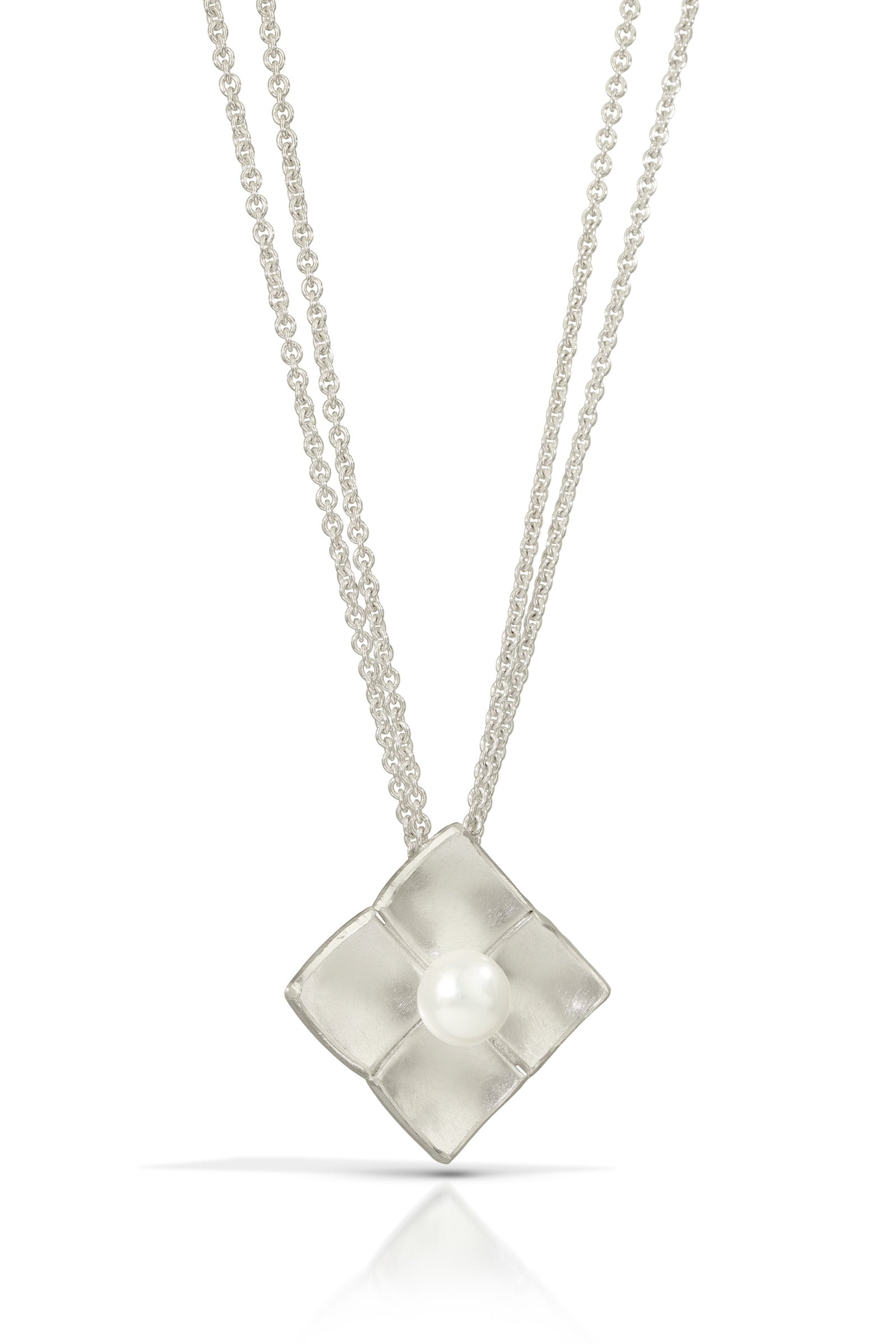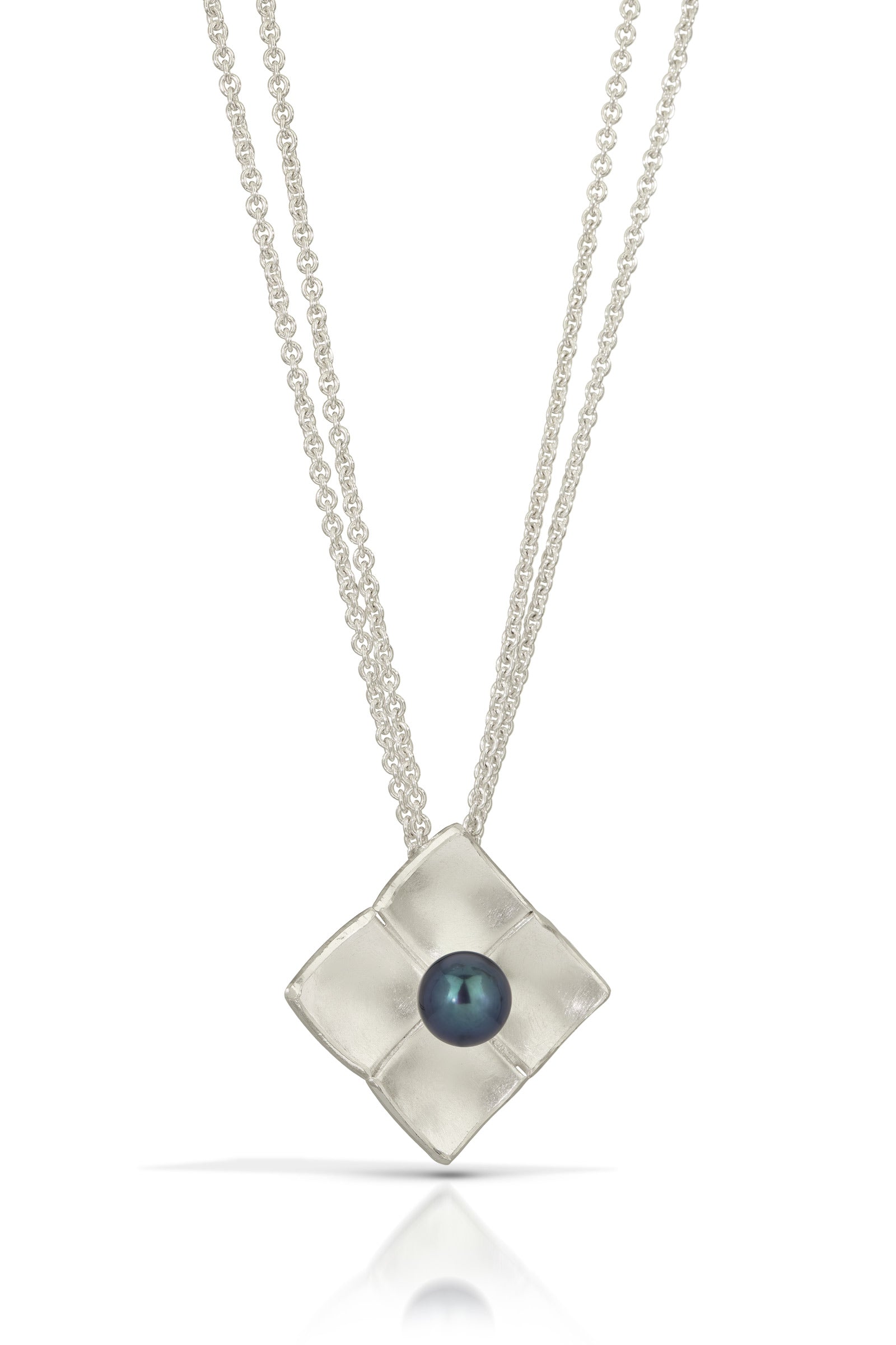 Crafted from sterling silver, this luxurious and sophisticated pendant is crowned with a pearl: choose from black, white, or natural color. Adjustable chain closes with a lobster clasp.